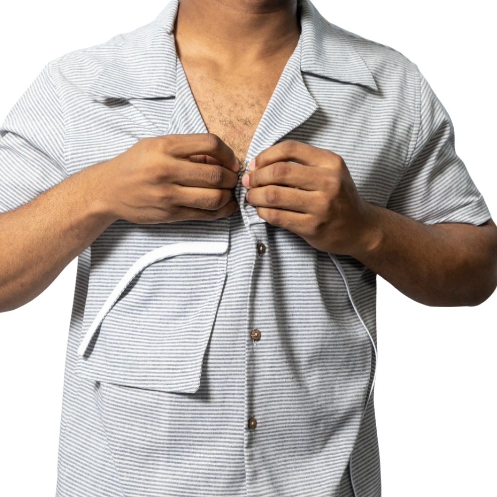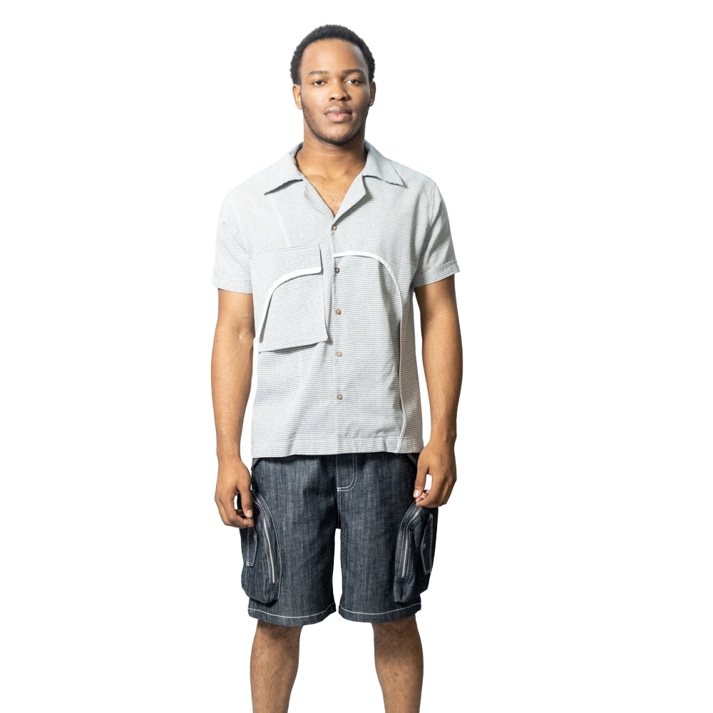This Clay Design Shirt is a versatile designer casual piece made of high-quality linen fabric. With its functional outer pockets, this shirt offers both style and utility. Perfect for any occasion, this shirt is a must-have for every fashion-forward individual.