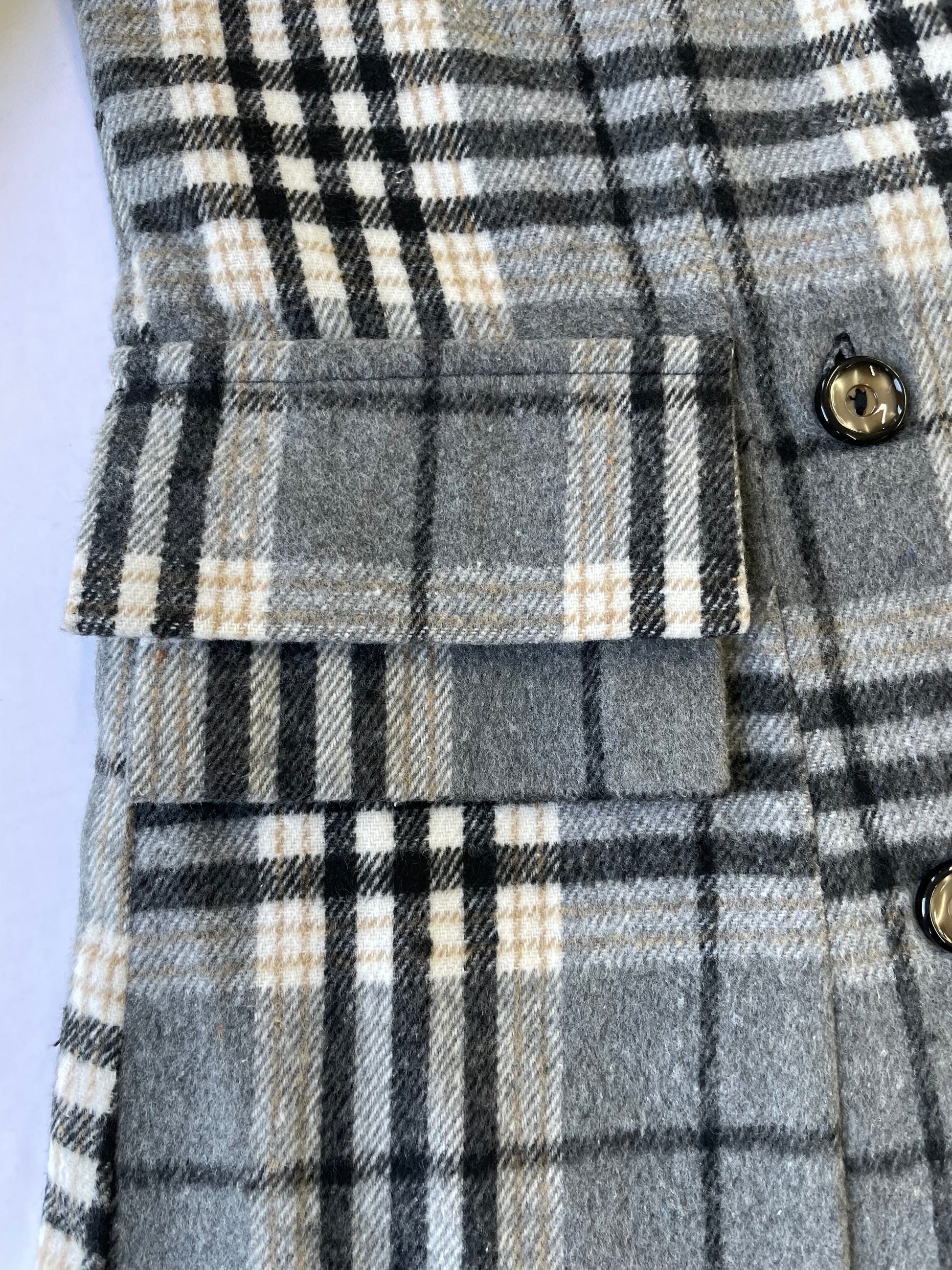 Indulge in luxury with the Grey check Flannel coat/dress by Konwaba. This exclusive piece features a double-breasted design and premium flannel material for a sophisticated touch. Stay warm and stylish all year round, while elevating your fashion game with this versatile and durable addition to your wardrobe. Perfect for any occasion.